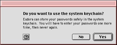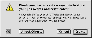 Step 9: Keychain Creation (Part 2) Click "Create" when prompted to create a keychain for passwords and certificates IMPORTANT: you must allow Eudora to use the Keychain for storing the SSL secure email certificate, or your mail.4securemail.com account will not work.