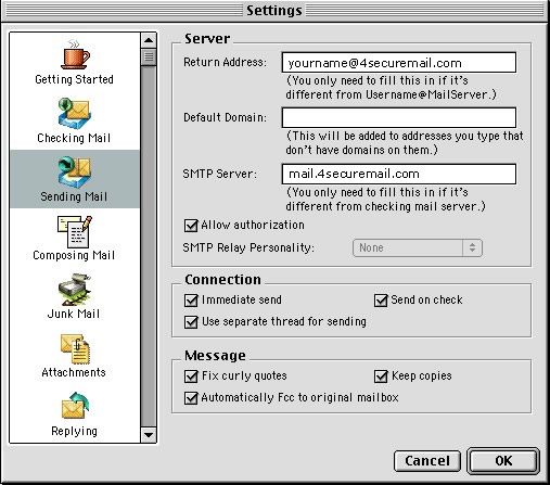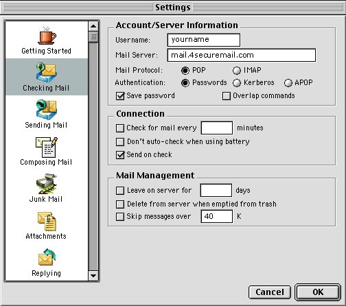 Secure Email Configuration Eudora Mac 9.2 |