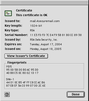 Configuring Eudora POP/IMAP for MacOS 9.2.xSecure Domain Email Customers: If your secure email account with us uses a domain name other than 4securemail.com, simply use your domain instead of 4securemail.com wherever it appears in the instructions or the examples given. If you have purchased your own IP address & certificate, you may substitute any reference of mail.4securemail.com with your mail host name, e.g. mail.yourdomain.com.